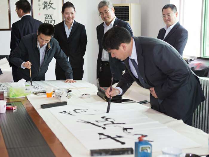 为弘扬传统文化,丰富员工业余生活,5月6日上午,k1体育官方网站登录入口-k1体育(中国)举办了首届书画艺术学习交流活动。本次活动邀请了中国书法家协会会员孟云飞博士、中国书法家协会理事张铜彦先生、中国书法家协会编辑出版委员会副主任王荣生教授、人民艺术家协会理事于瑛先生等国内知名书画大师,各位书画大师在活动现场进行了艺术创作表演,挥毫泼墨,交流技艺,为k1体育官方网站登录入口-k1体育(中国)留下了数十副墨宝,还对部分员工的书画作品进行了悉心指导。公司员工现场欣赏了书画大师的艺术创作,并聆听了有关书画艺术鉴赏知识的介绍,部分员工还在活动现场进行创作,听取书画大师的讲解示范和点评。